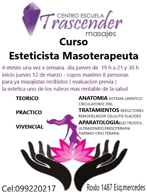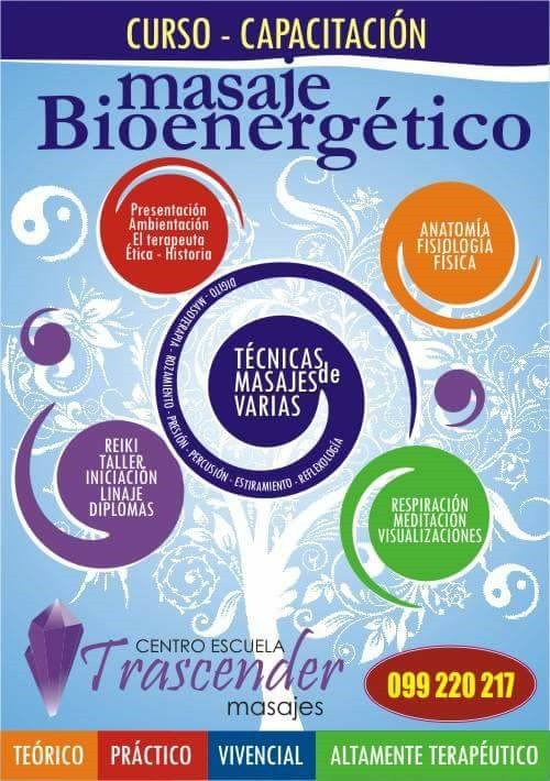 En todas las áreas que desarrollamos en TRASCENDER están orientadas al bienestar de tu salud física-mental-emocional, llevamos a la practica lo que hemos estudiado practicado y comprobado que pueden ayudarte con diferentes situaciones o lesiones que te estén complicando tener una buena calidad de vida, ayudarte a sanar nos ayuda a nosotros, enseñar y compartir nuestros conocimientos también nos gratifica, el poder formar terapeutas masajistas y por sobre todo dejar una pequeña huella en el camino de la madurez emocional y existencial de una persona es simplemente maravilloso.